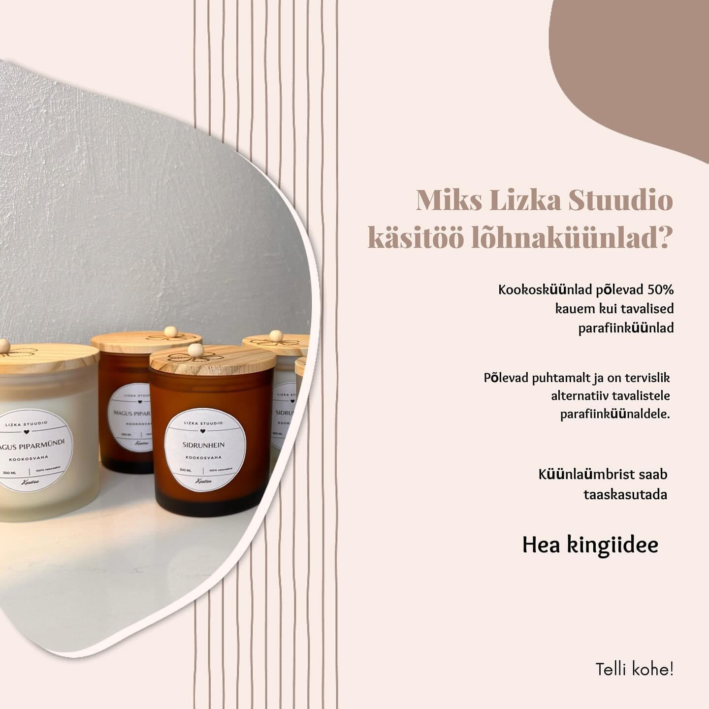 - Minu küünlad valmivad 100% naturaalsest ja jätkusuutlikust taimsest kookosvahast ning selles puuduvad loomsed- ja mineraalõlid.
