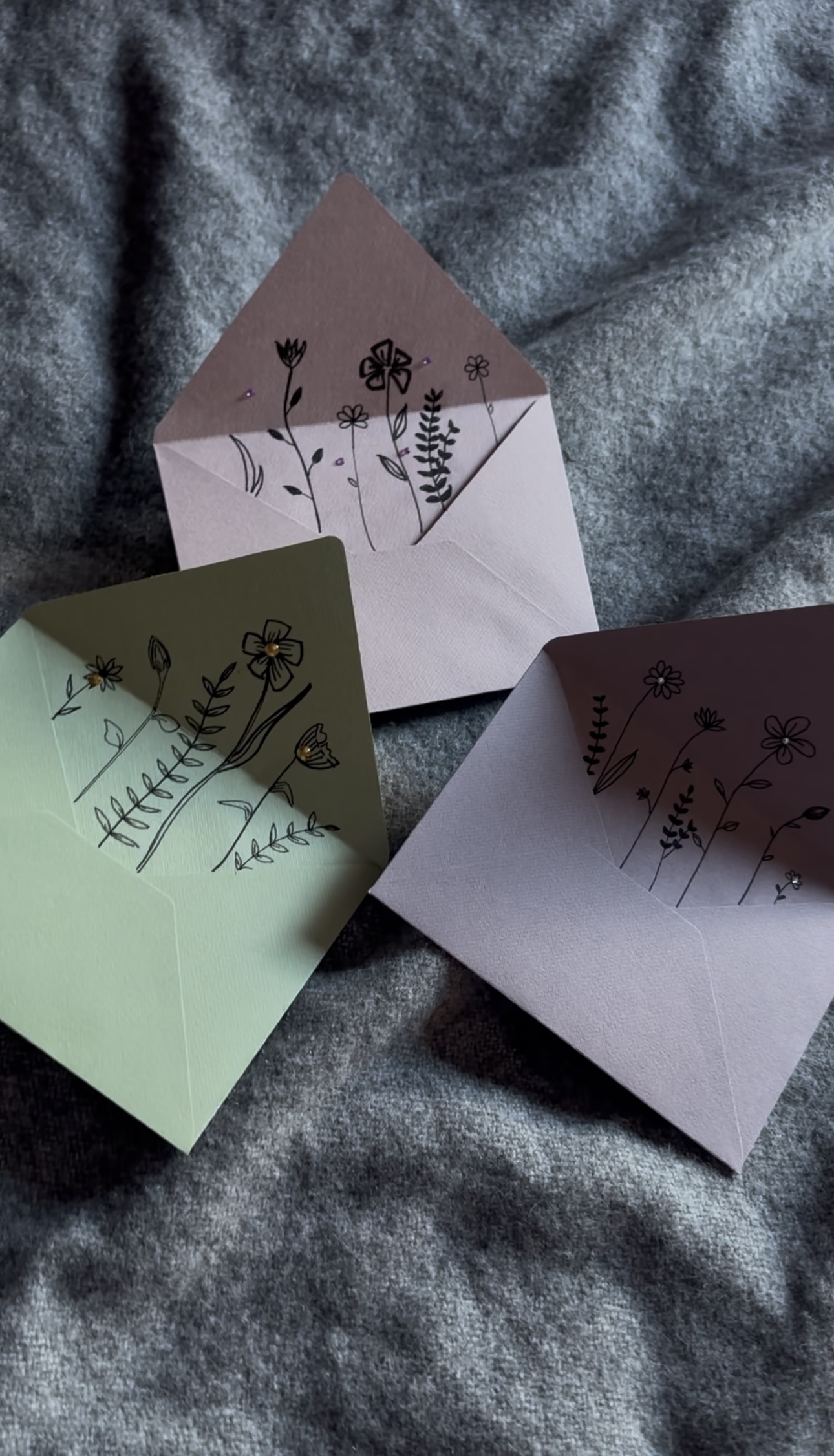 Käsitöö rahaümbrikud (3 tk) on käsitsi joonistatud ümbrikud, mis on kaunistatud nii väljast kui seest. Komplekti kuuluvad kolm ümbrikut: tumedam lilla, roosa ja heleroheline. Iga ümbrik on unikaalne ja erineb pisut teisest.