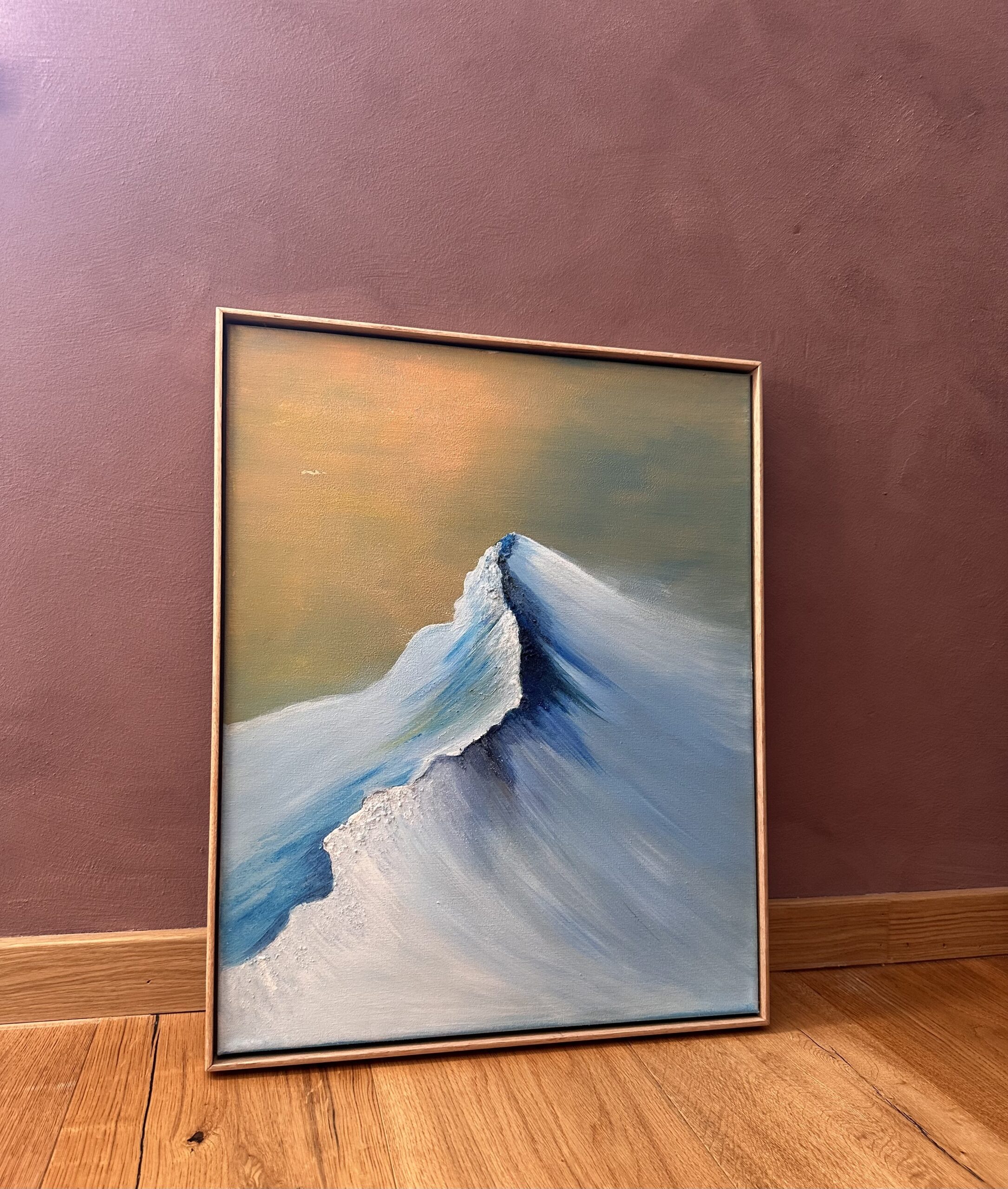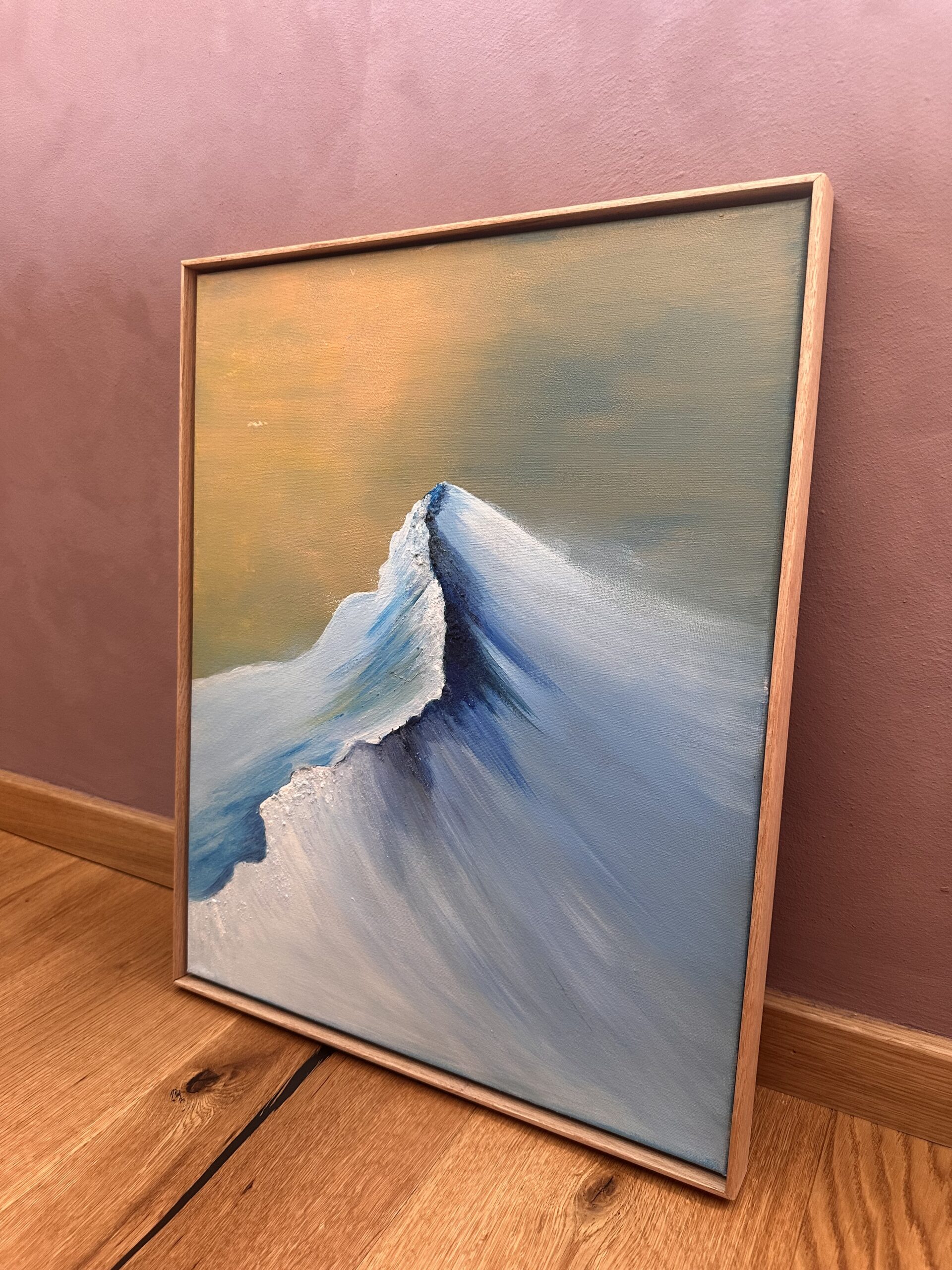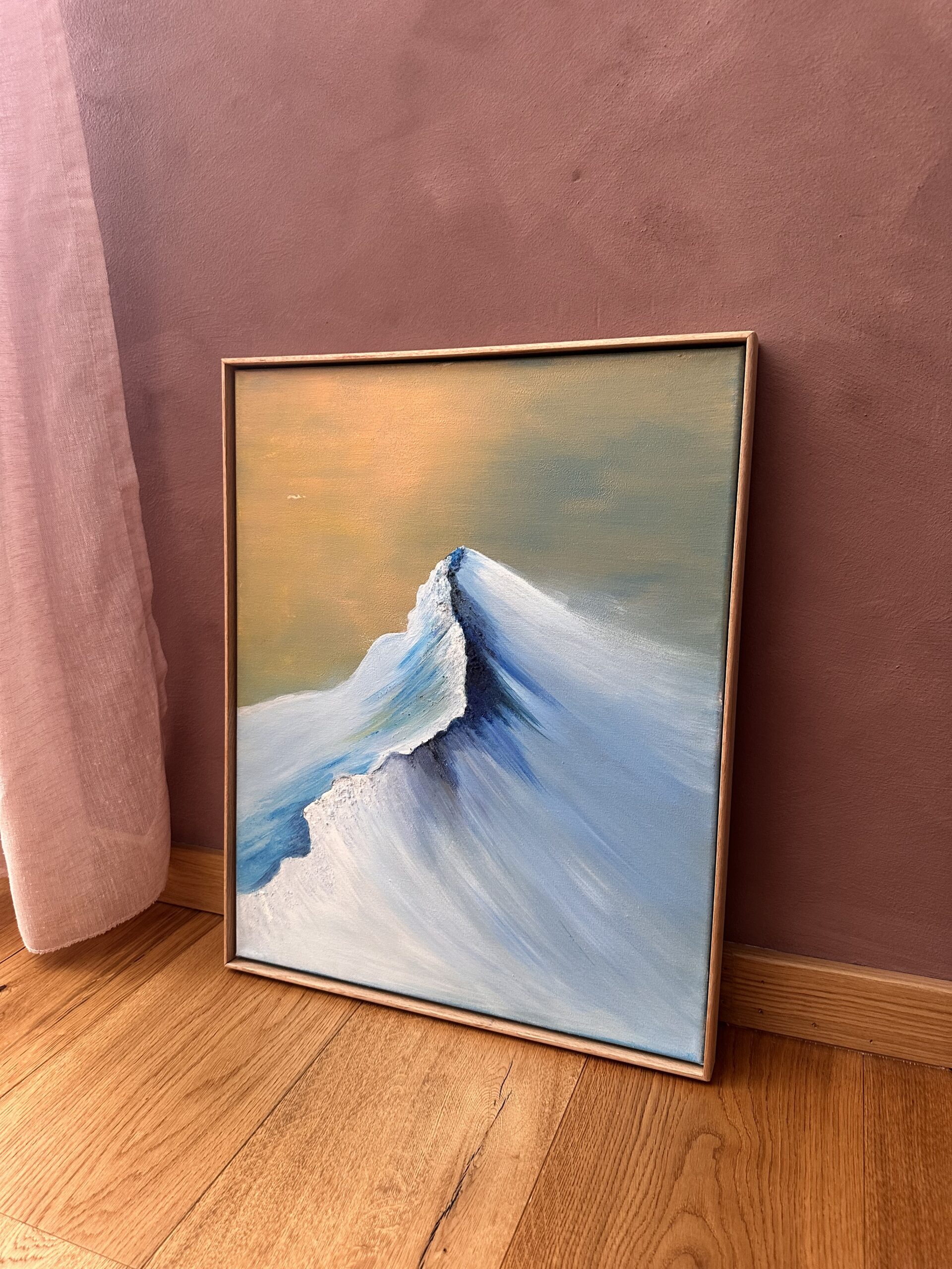 Seinamaal “Külm videvik” sündis ühel imelisel naiste koosviibimisel. Sel üritusel viidi läbi akrüüli maalimise töötuba ja proovisin võtta endale võimalikult raske ampsu. Mina maalin ühte maali väga pikka aega. Ma vaatan seda erinevate nurkade alt, pildistan, vaatan kaugelt, teen ümber ja täiustan ja täiustan kuniks olen väga rahul. Läksin sellelt ürituselt koju oma mäe maaliga ja teadsin, et siit saab asja. Nädalaid ja nädalaid hiljem- siin see on! Kaunis videvik! Imeline seinakaunistus igasse interjööri!